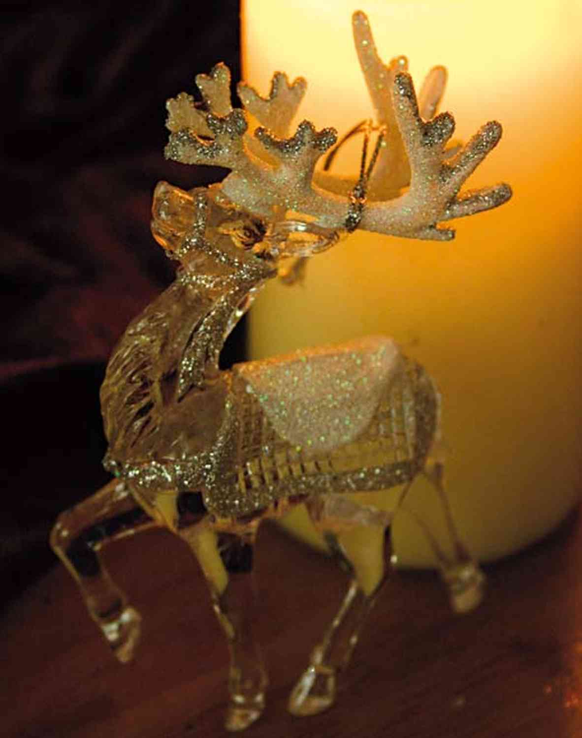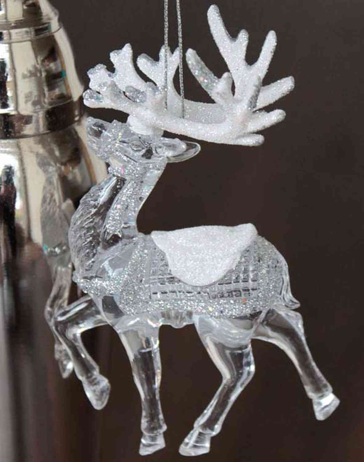 Acrylic hanging ornament Deer MATTHIS, glitter, transparent-silver-white, 3.5"x0.8"x4.7"/ 9x2x12cm