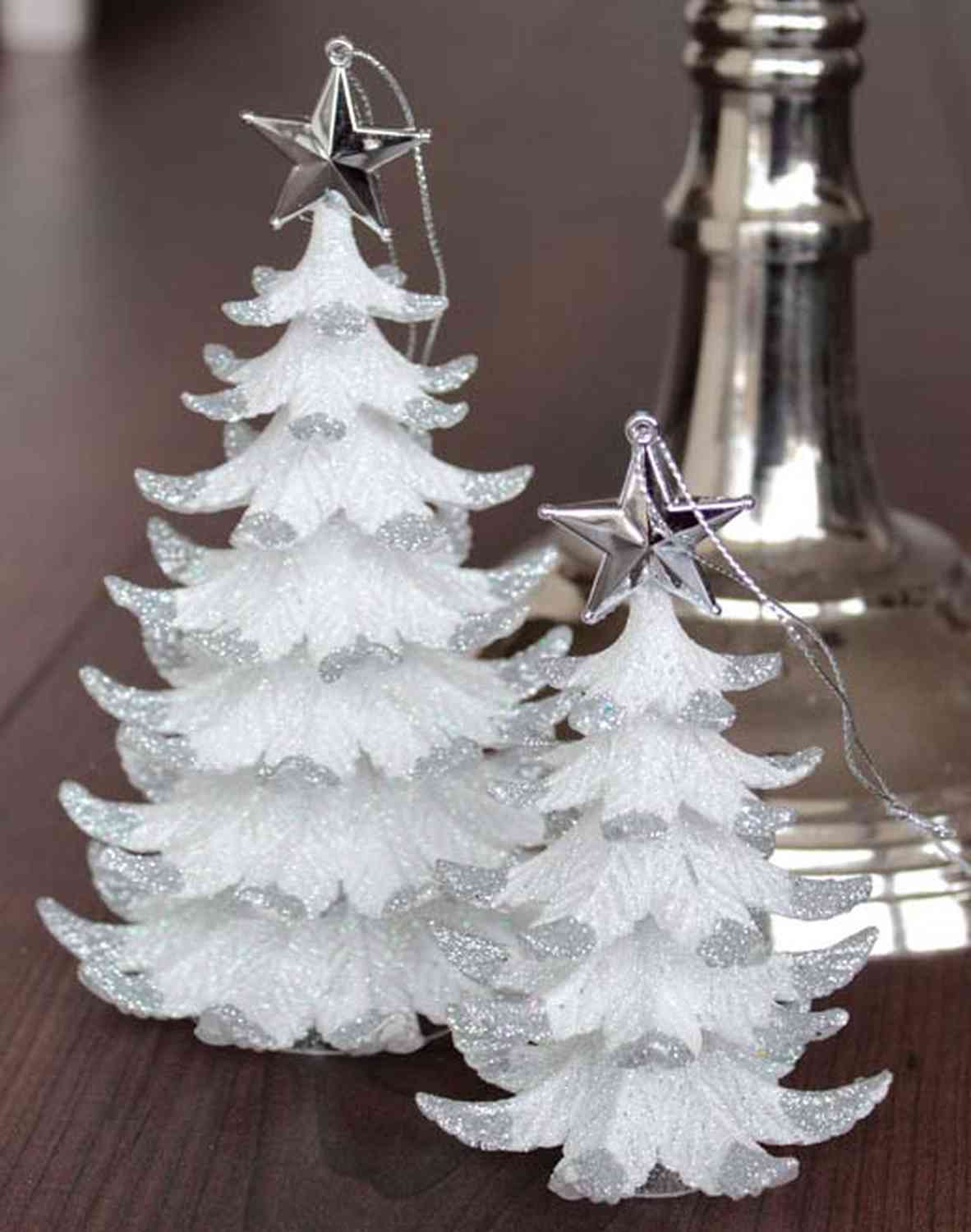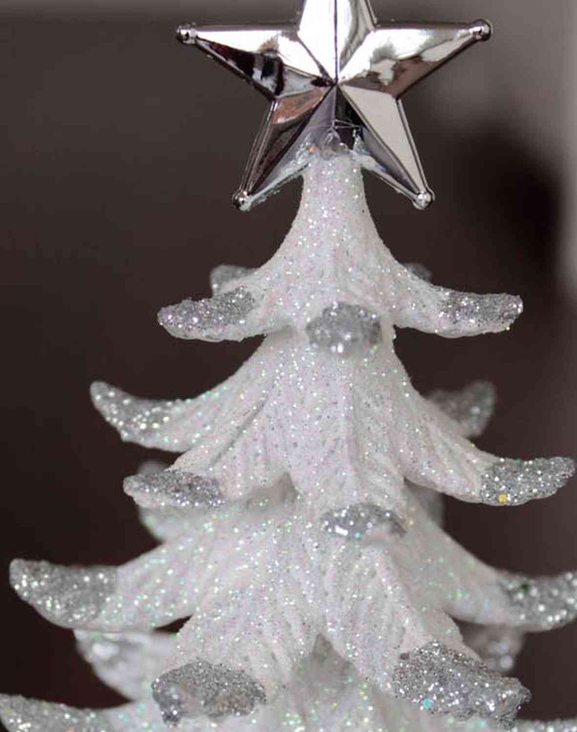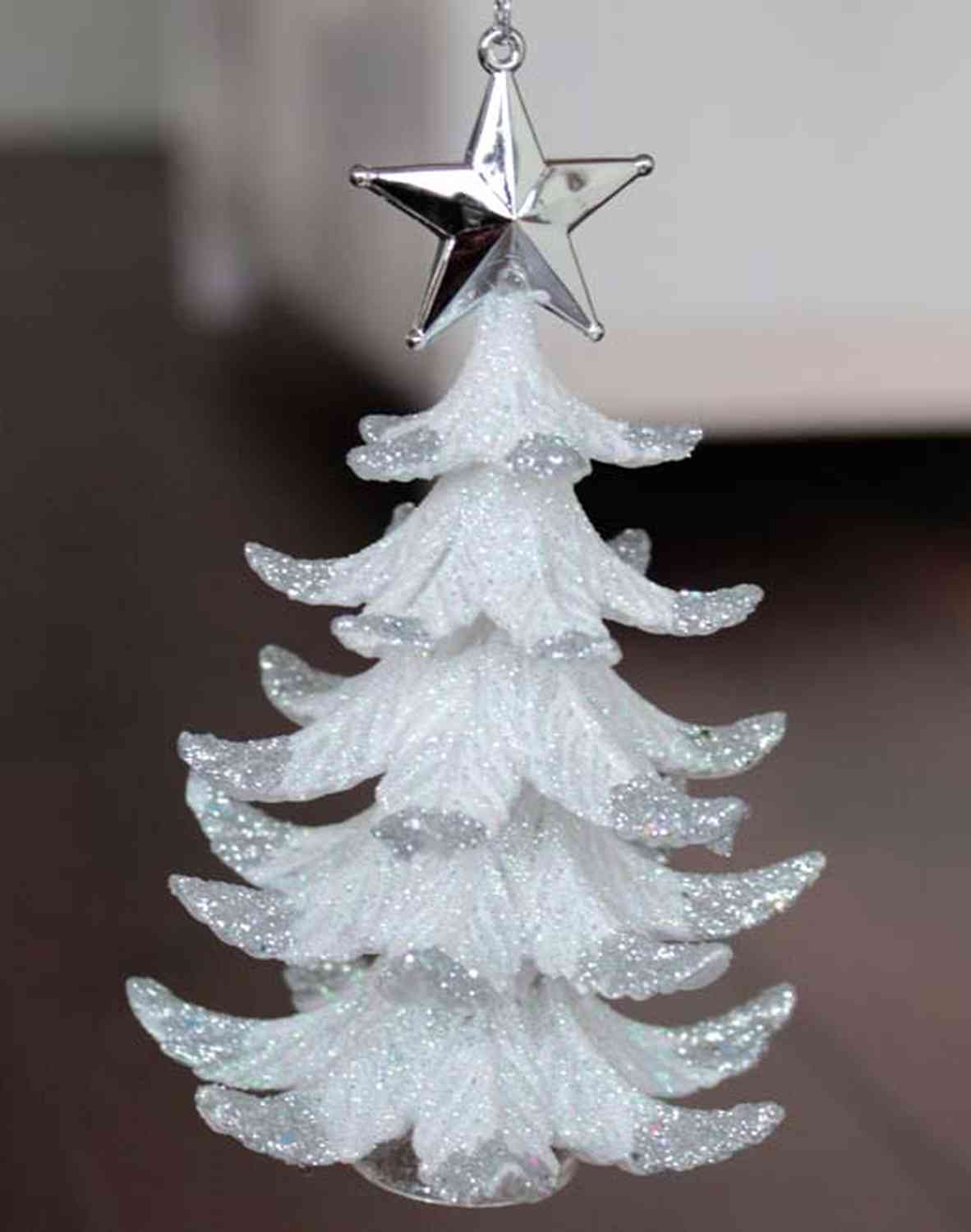 Acrylic hanging ornament Fir tree RION with star, glitter, white-silver, 4.7"/12cm, Ø3.5"/9cm