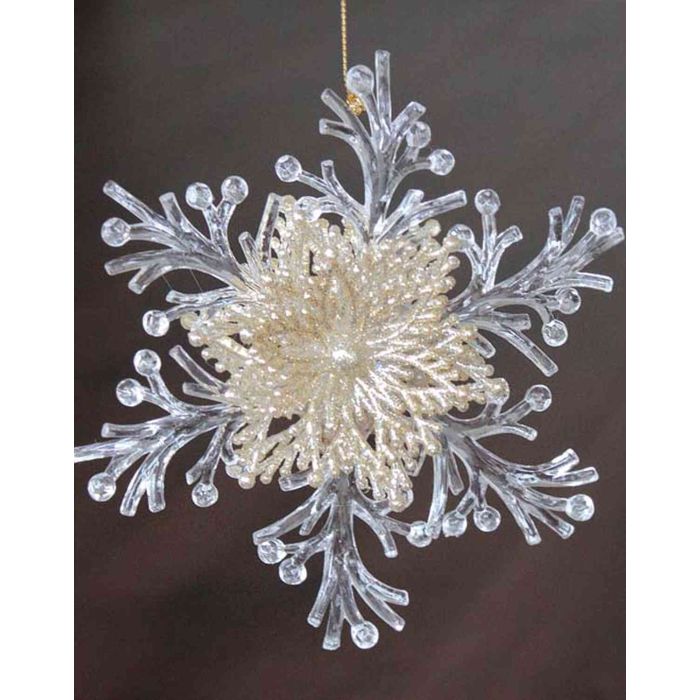 Acrylic hanging ornament Snowflake BALADI, glitter, transparent-gold, Ø6"/15cm