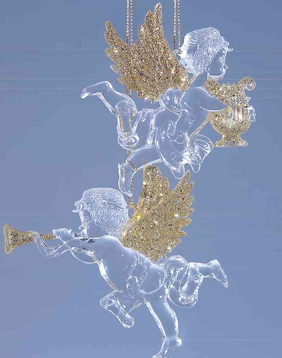 Acrylic pendant angel, 2 pieces, harp, lyre, glitter, gold, 3.5"x3.9"/9x10cm