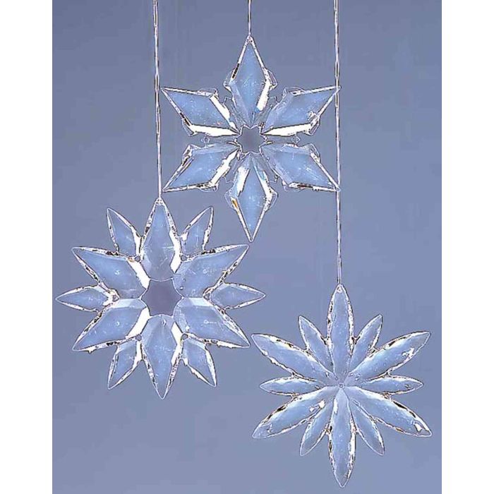 Acrylic snowflake, 3 pieces, transparent, Ø 4.3"-4.7"/11-12cm