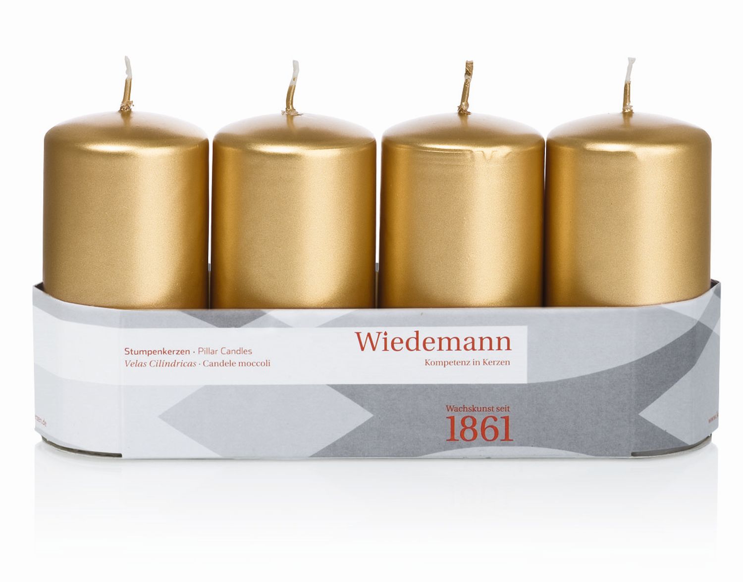 Advent candles JENARO, 4 pieces, gold, 10cm, Ø5cm, 23h - Made in Germany