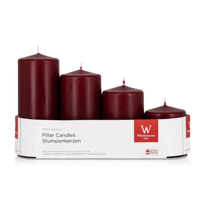 Advent candles JENARO, 4 pieces, graduated, bordeaux, 6cm, 8cm, 10cm, 12cm, Ø5cm - Made in Germany