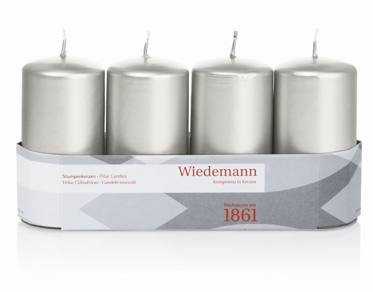 Advent candles JENARO, 4 pieces, silver, 10cm, Ø5cm, 23h - Made in Germany