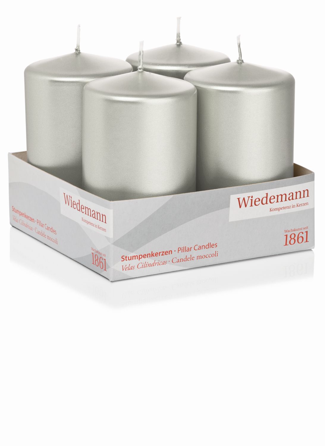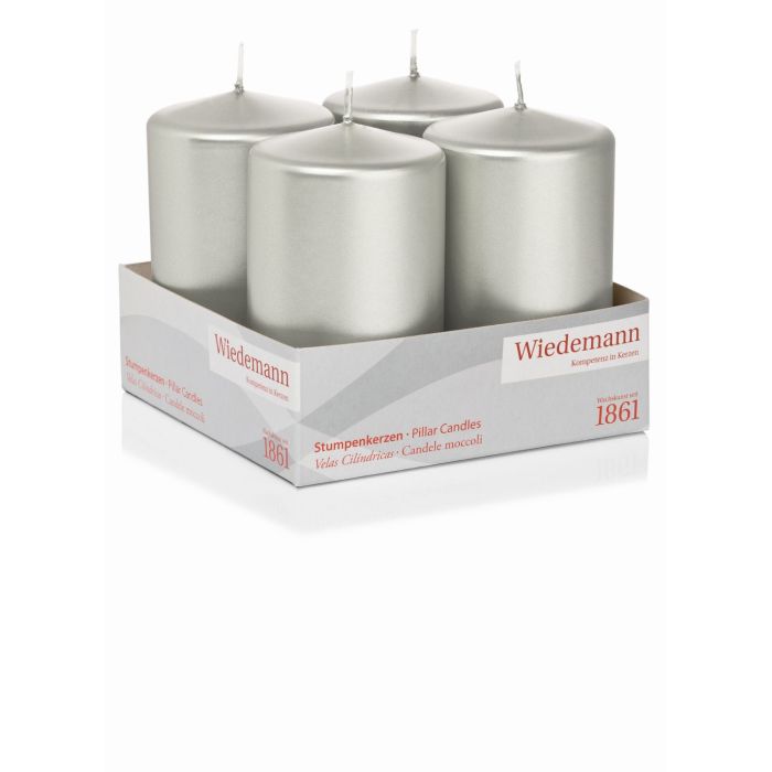 Advent candles JENARO, 4 pieces, silver, 10cm, Ø6cm, 33h - Made in Germany