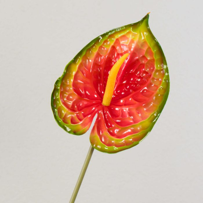 Artificial Anthurium JASMINA, green-red, 30"/75cm, 5.5"x7"/14x18cm