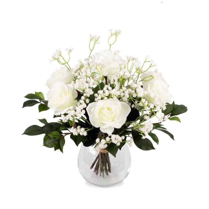 Artificial bouquet of roses and baby's breath ELLI, cream-pink, 14"/35cm, Ø 12"/30cm