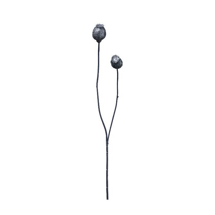 Artificial branch Poppy capsules ORIONLA, dark blue, 26"/65cm