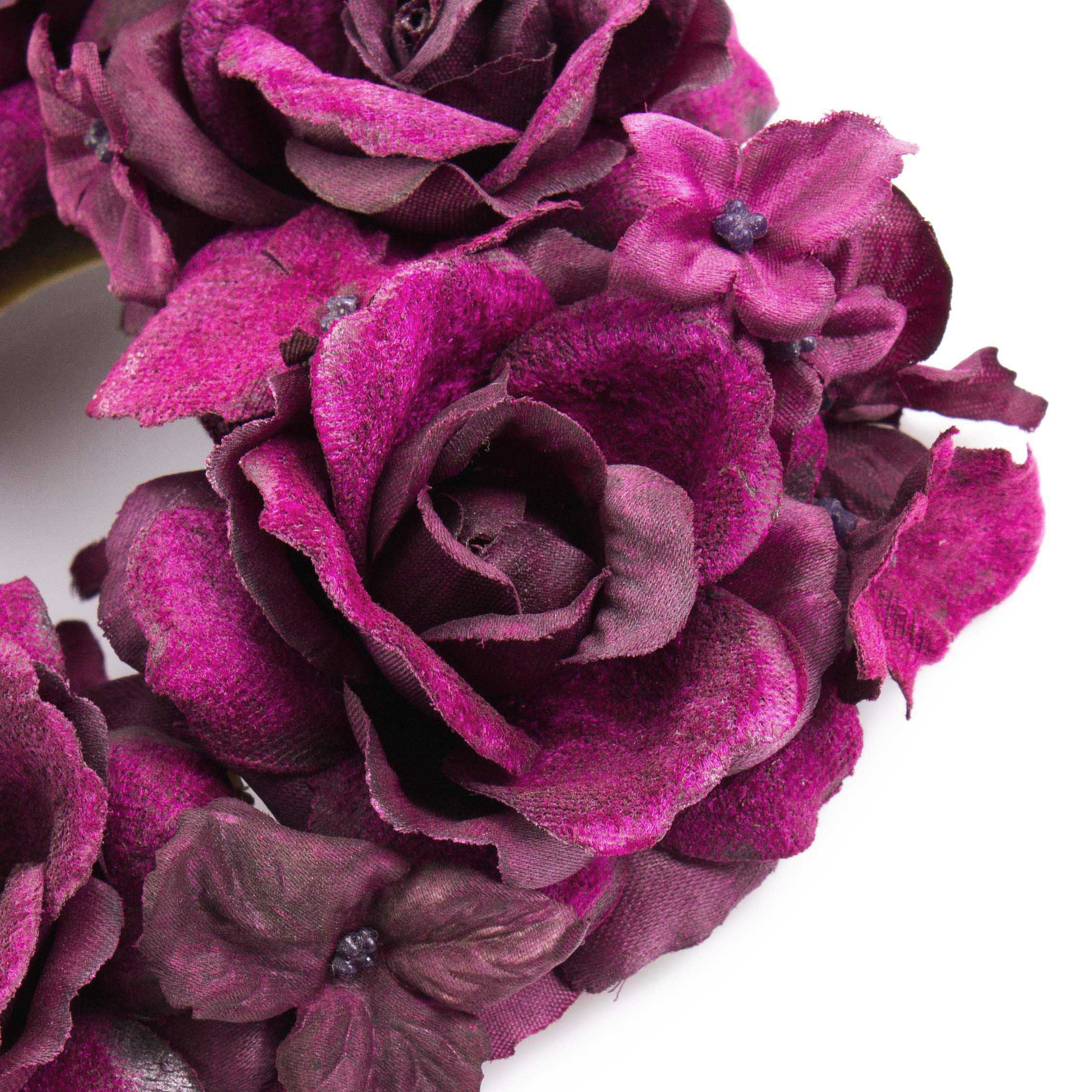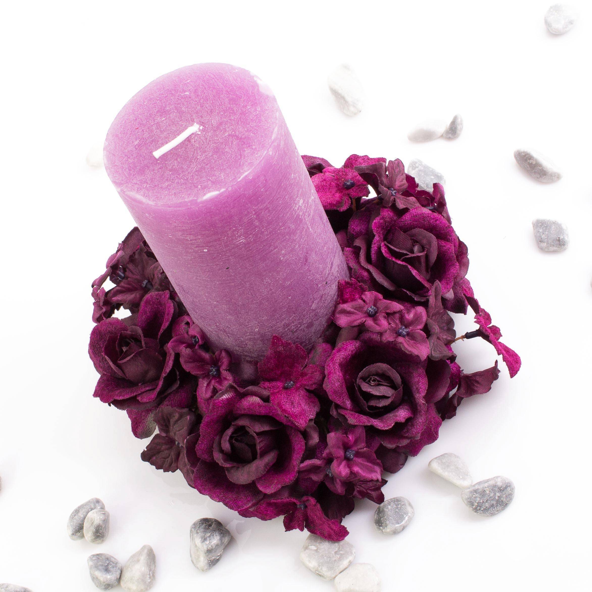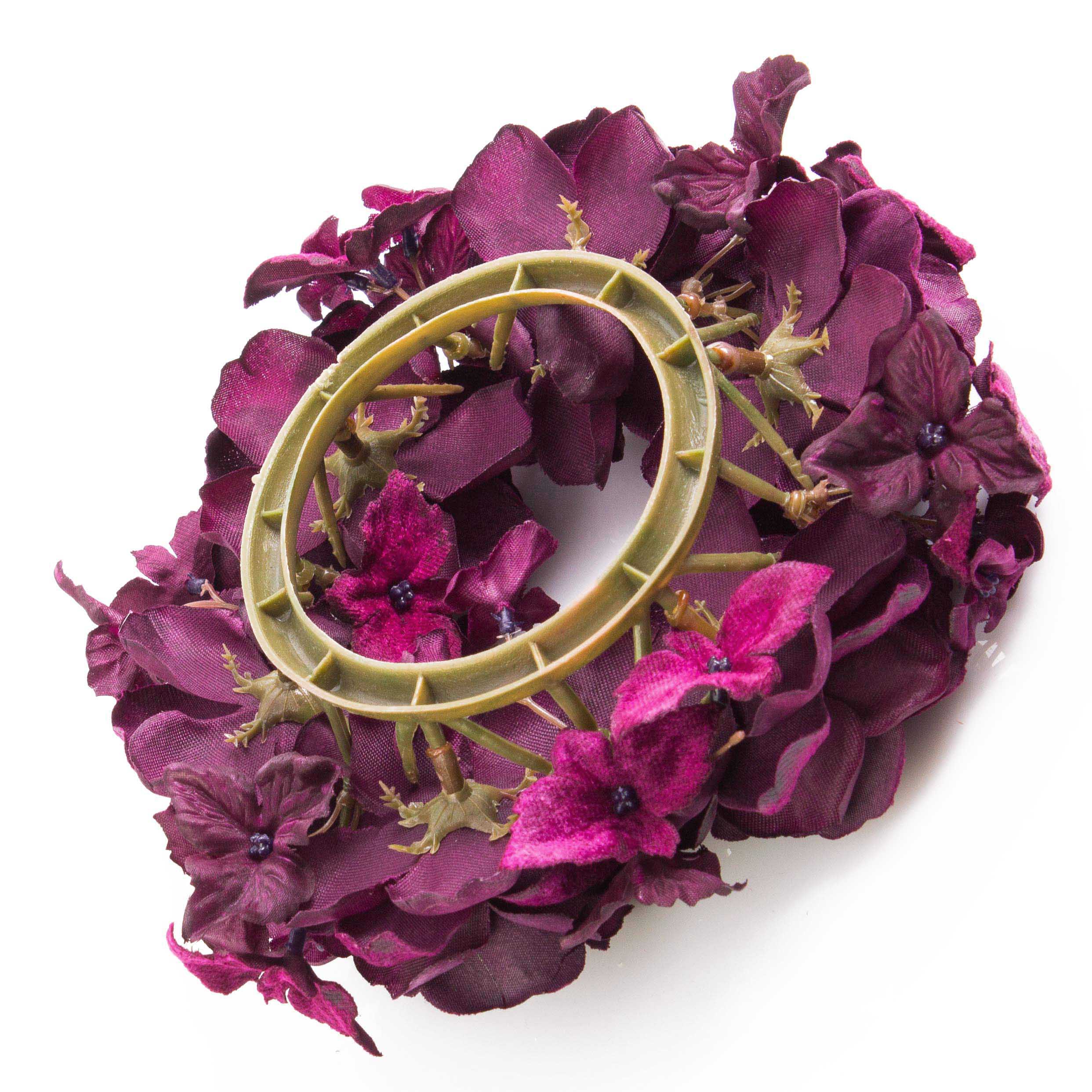 Artificial candle wreath INGA, rose, hydrangea, violet, Ø 5.9"/15cm