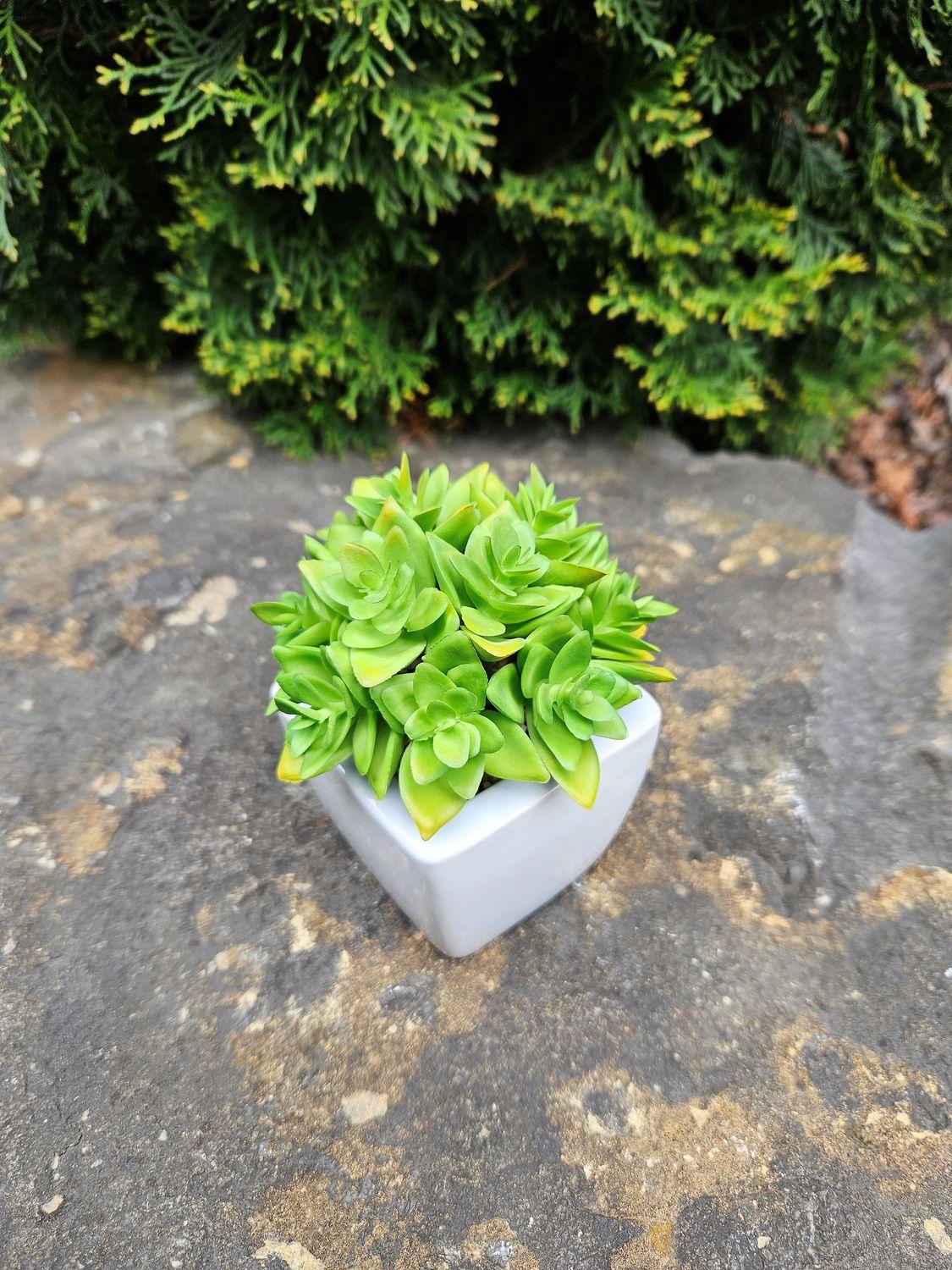 The plastic Echeveria KATNISS will create an attractive eye-catcher, e.g. in the furniture department, in a restaurant or in a retirement home.
