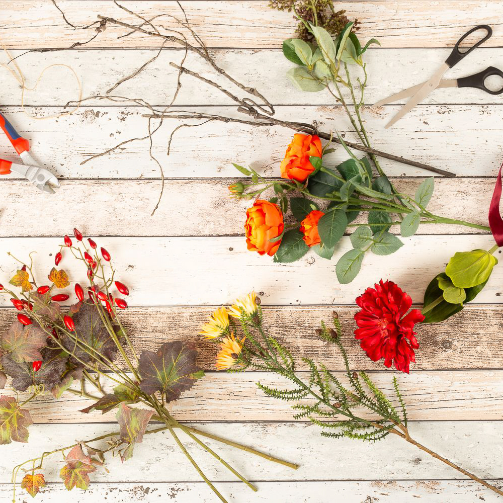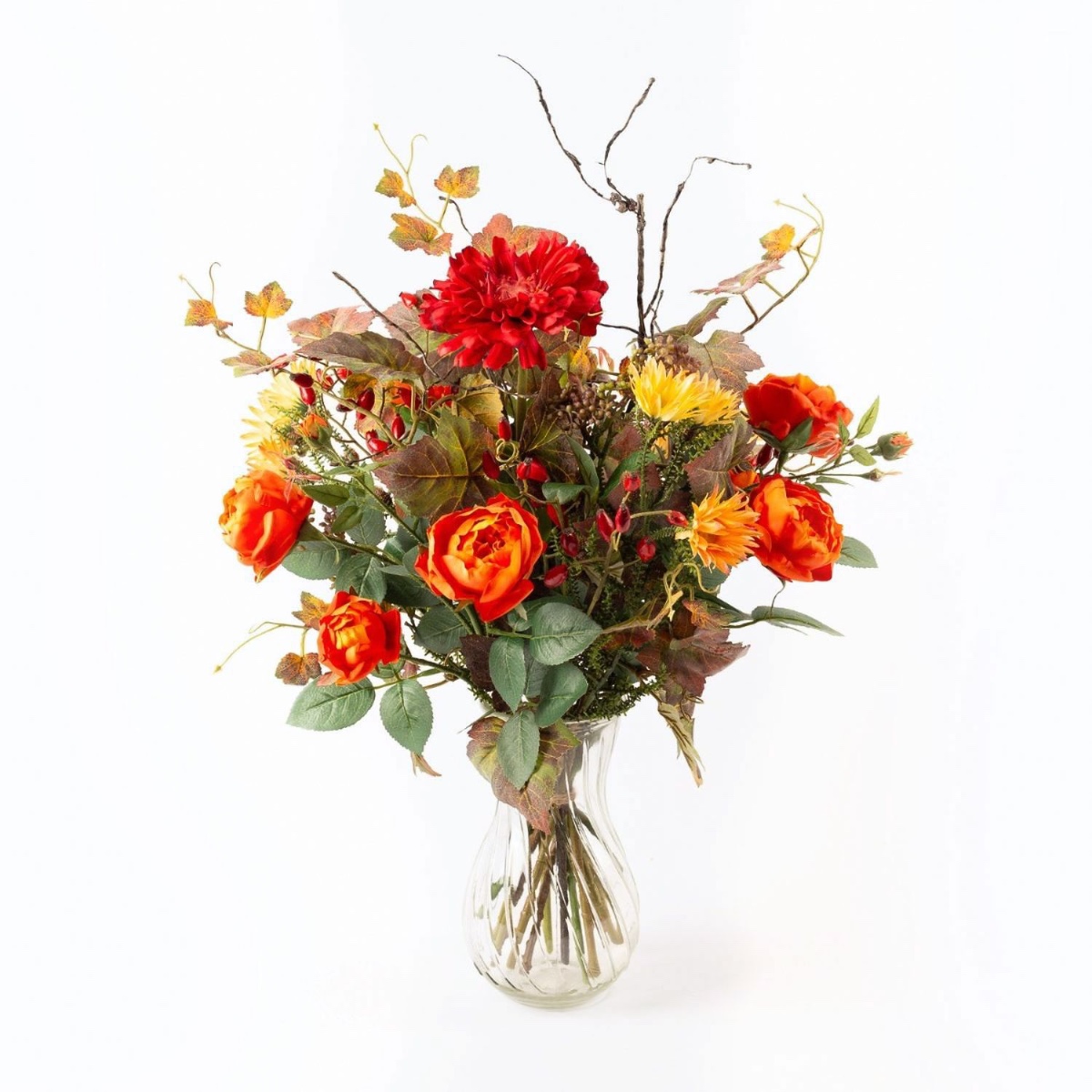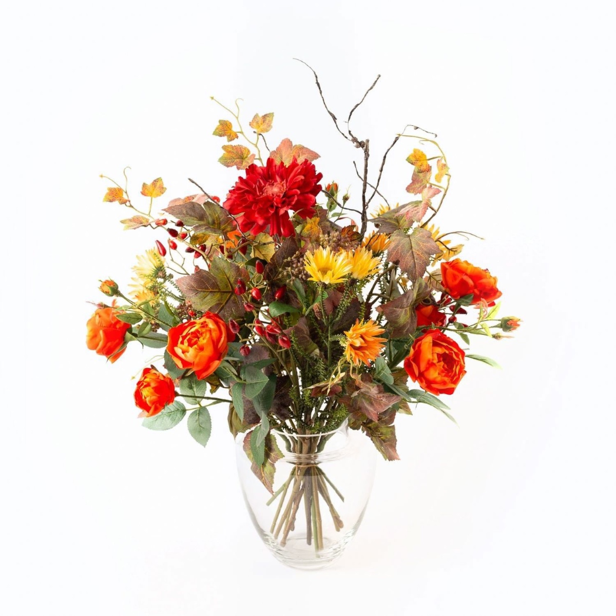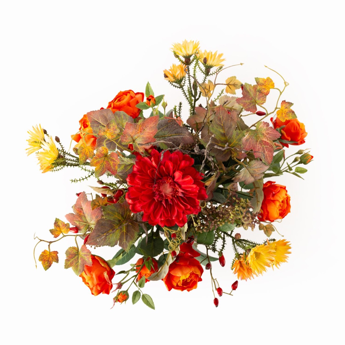 Artificial fall bouquet HELIANTA, orange-brown, 16"/40cm, Ø 12"/30cm