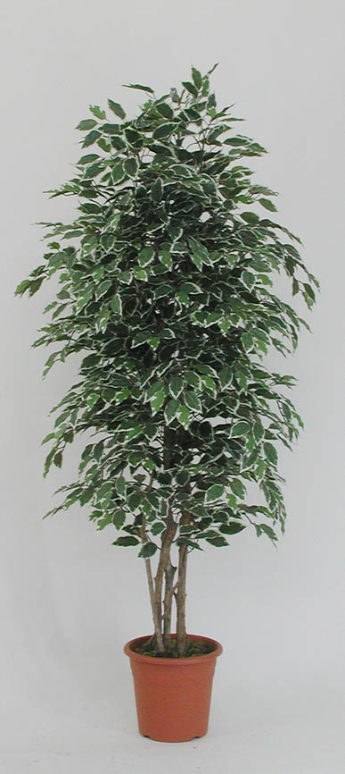 Artificial Ficus Benjamina KONRADE, real stems, green-white, 3ft/100cm - Made in Italy
