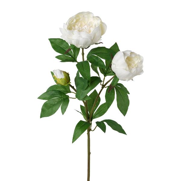 Artificial flower branch Peony SLORVE, white, 28"/70cm
