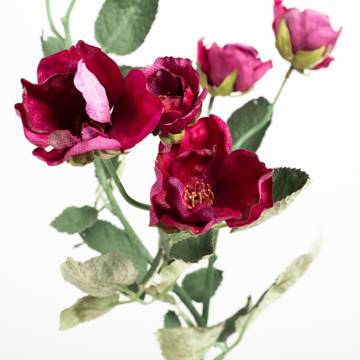 Artificial flower branch Wild rose FOSETTA, Eco Collection, dark pink, 28"/70cm, Ø1.2"-2"/3-5cm