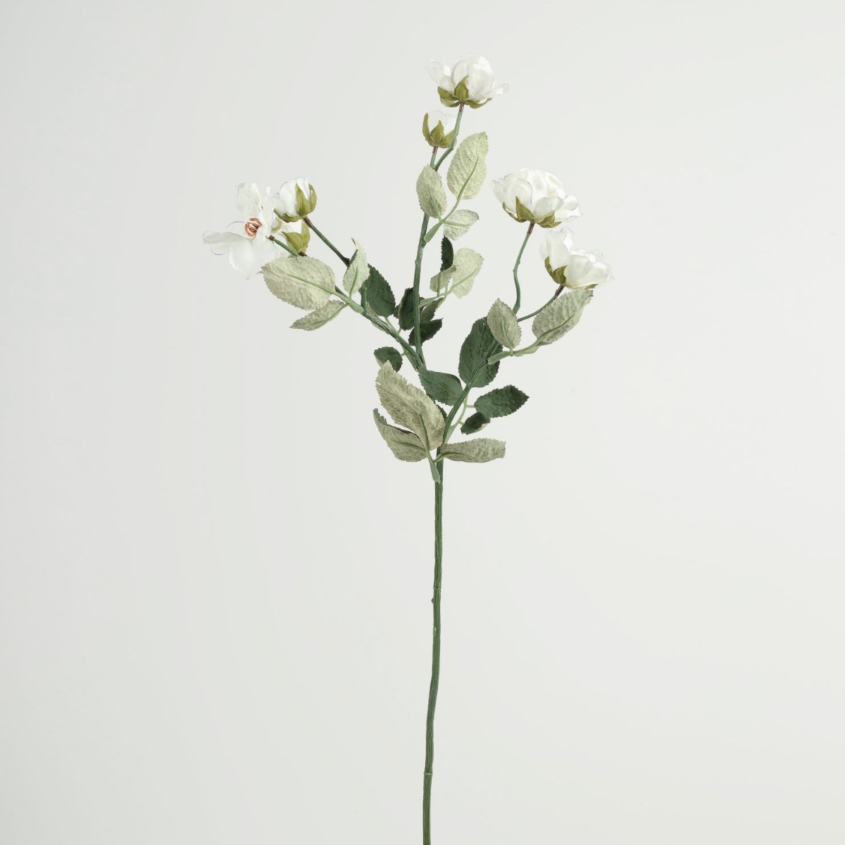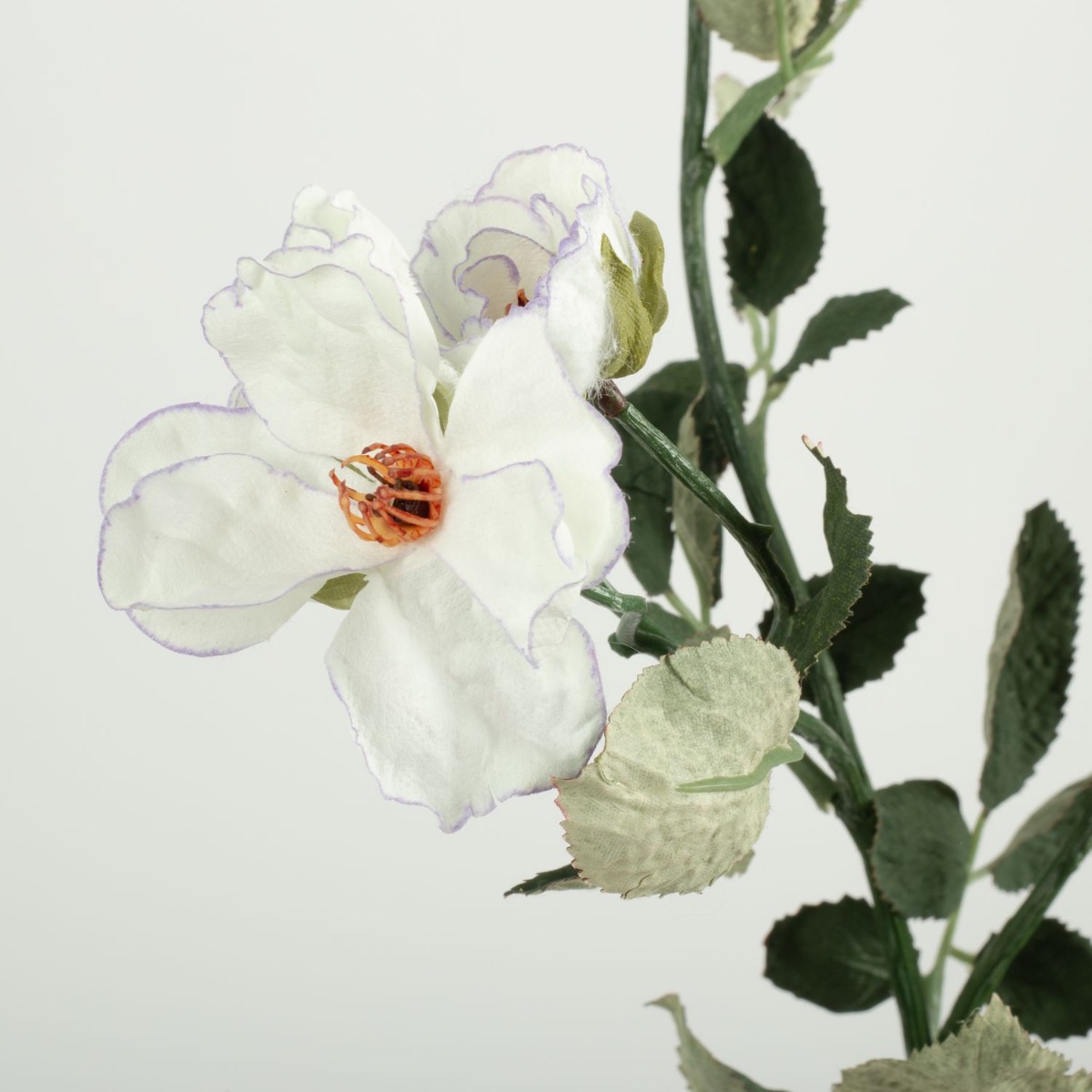 Artificial flower branch Wild rose FOSETTA, Eco Collection, white-purple, 28"/70cm, Ø1.2"-2"/3-5cm