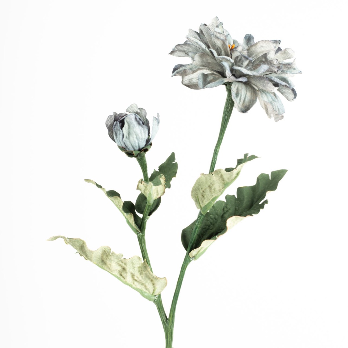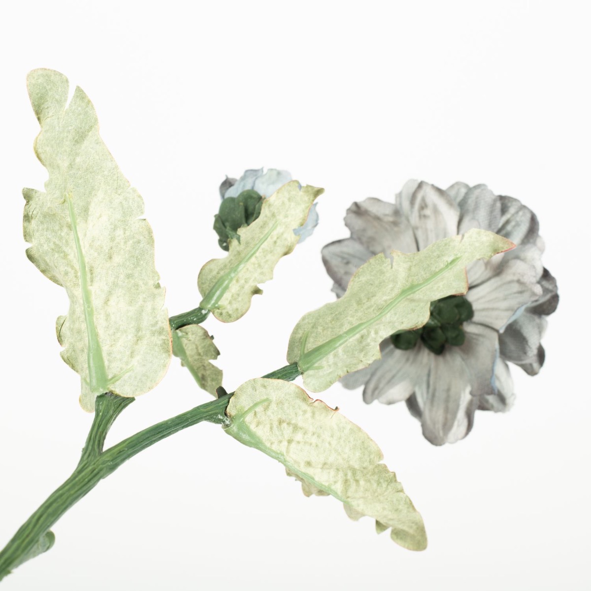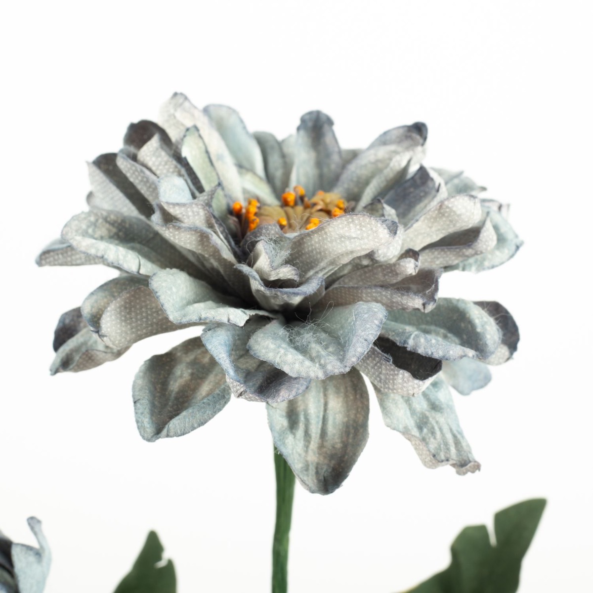 Artificial flower branch Zinnia GUNDISINE, Eco Collection, grey-blue, 26"/65cm, Ø3.5"/9cm