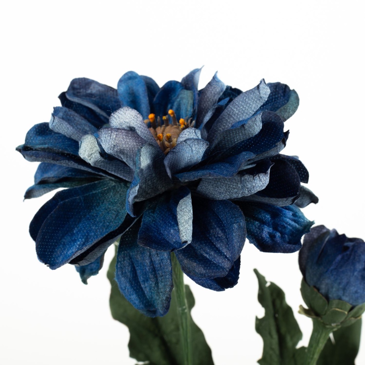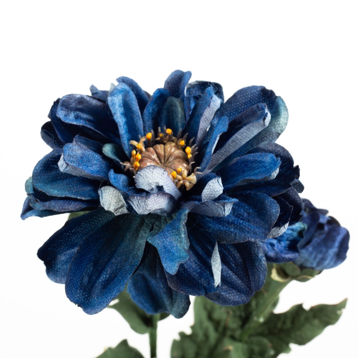 Artificial flower branch Zinnia GUNDISINE, Eco Collection, royal blue, 26"/65cm, Ø3.5"/9cm