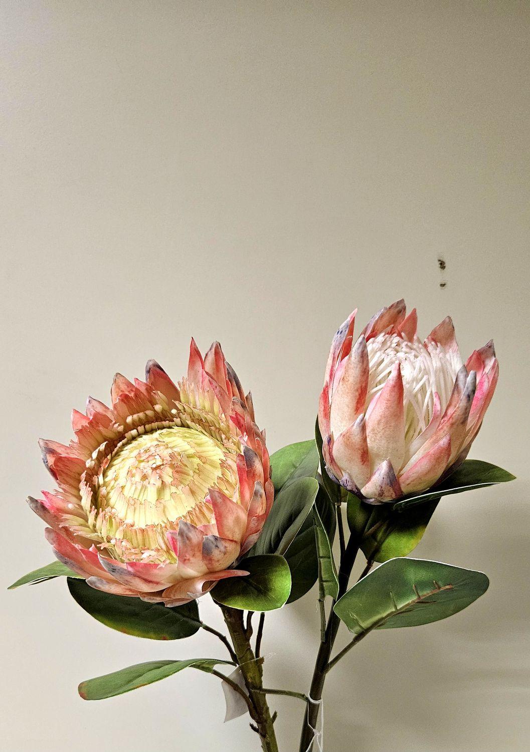 Artificial flowering branch King protea TANIEKA, pink-white, 28"/70cm