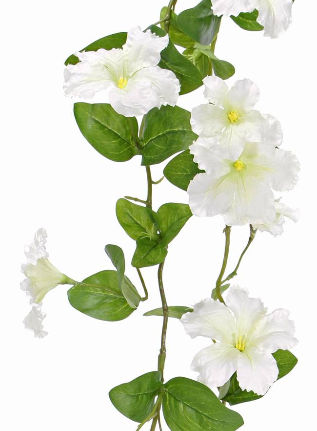 Artificial petunia spray MARTHE, white-green, 4ft/130cm
