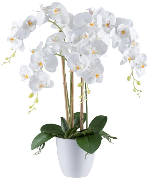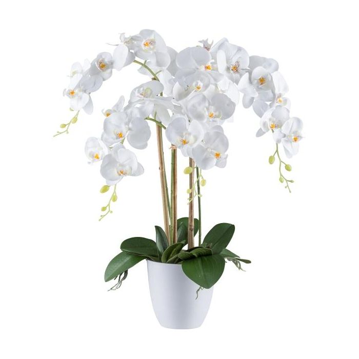 Artificial Phalaenopsis orchid BLENTOR in melamine planter, roots, white, 24"/60cm