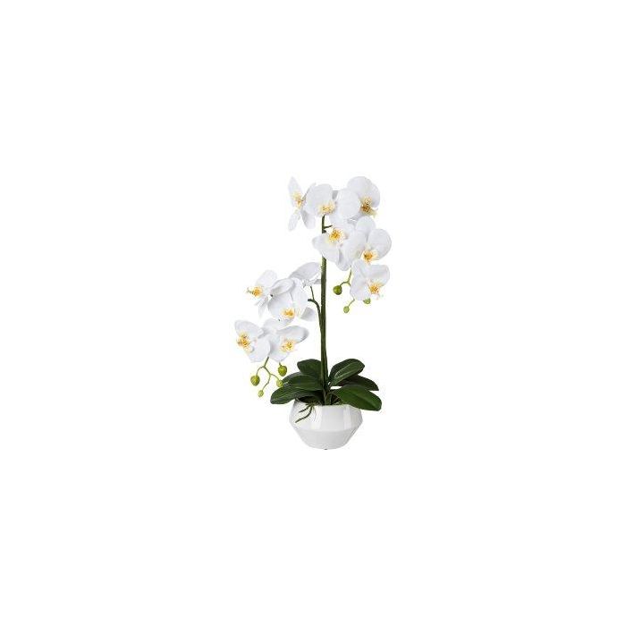 Artificial Phalaenopsis orchid KASDA, ceramic pot, roots, white, 20"/50cm