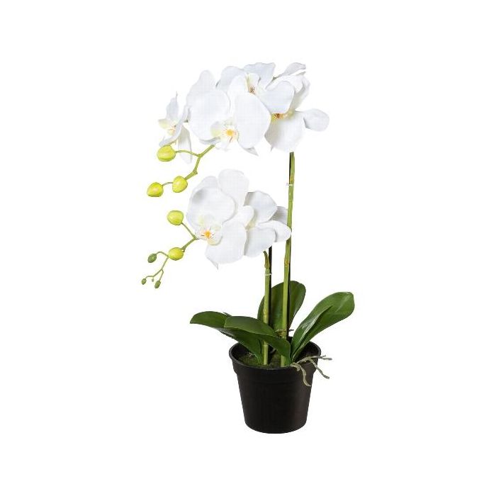Artificial Phalaenopsis orchid WENJAN, decorative pot, roots, white, 22"/55cm