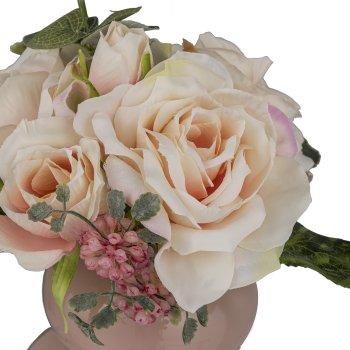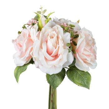 Artificial rose bouquet NURZO with accessories, pale pink, 12"/30cm