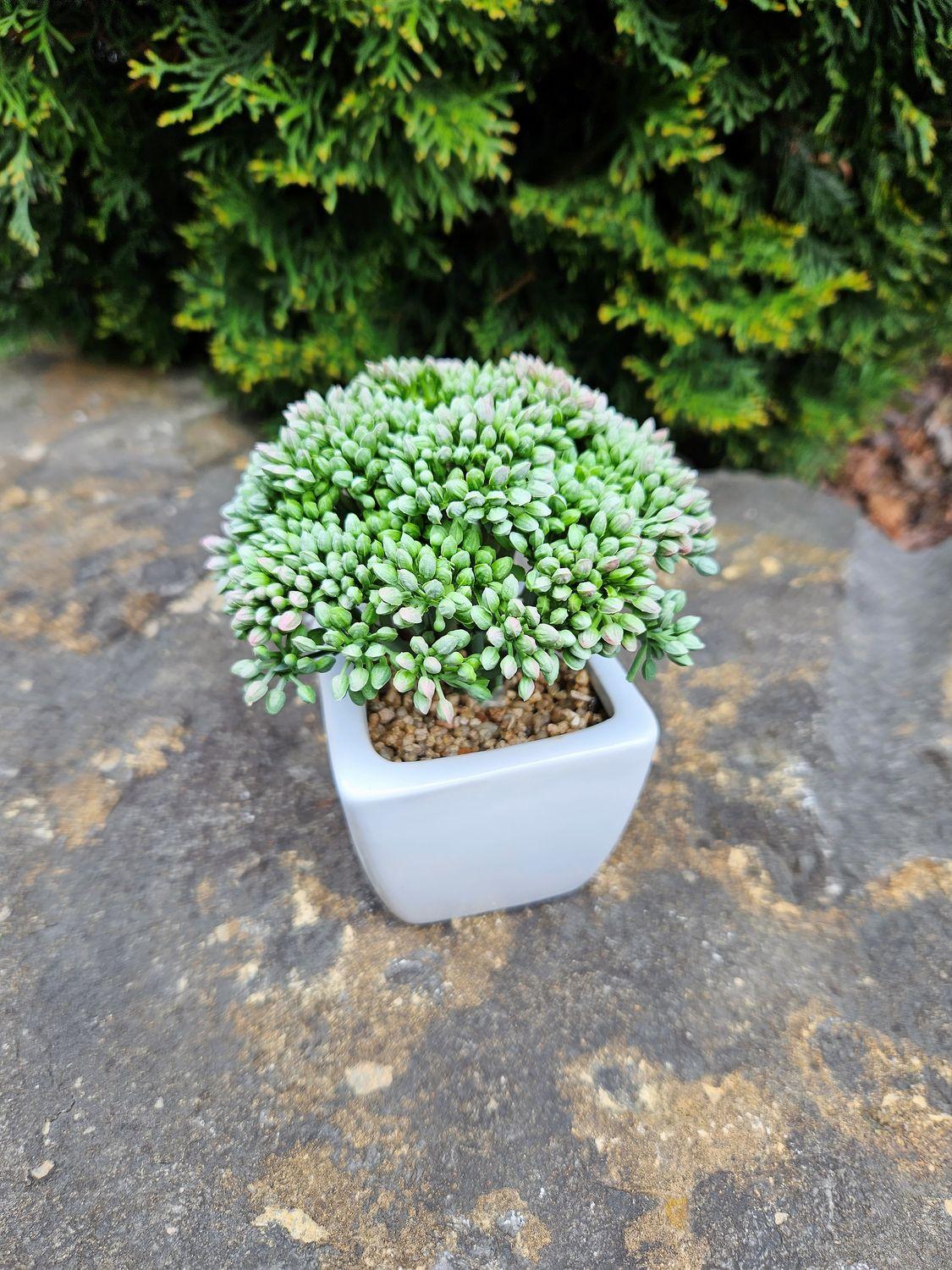 Artificial Sedum telephium KATNISS, ceramic pot, green, 5.5"/14cm