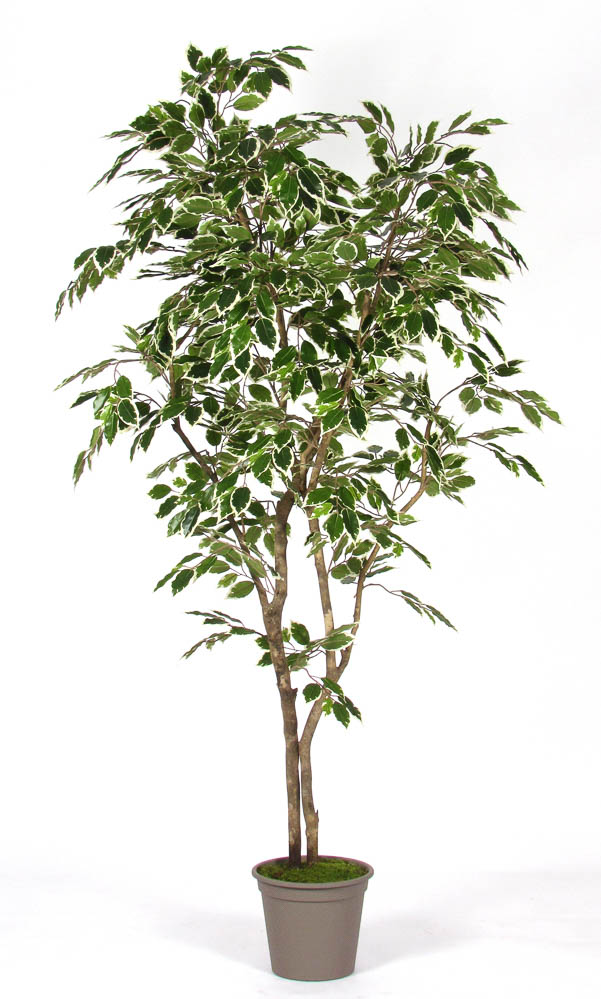 Artificial weeping fig BASILIO, real stems, green-white, 5ft/150cm - Made in Italy