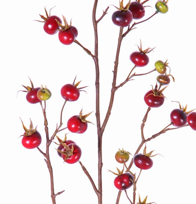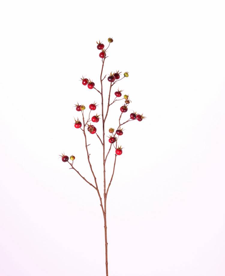 Artificial wild rose branch GERDA with fruits, red, 4ft/110cm