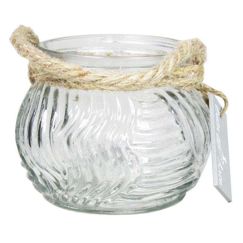 Ball candle vase FIDELMA made of glass, wavy grooves, transparent, 3.5"/9 cm, Ø 4.5"/11,5 cm