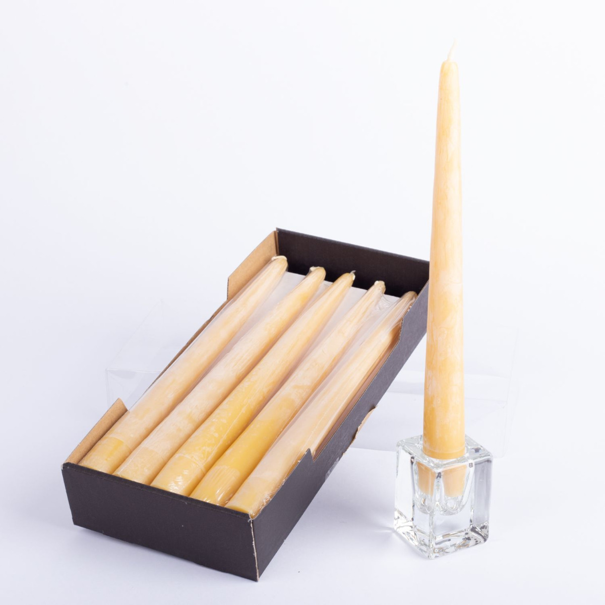 Beeswax dinner candle BABETTE, 6 pieces, natural-yellow, 10"/25cm, Ø1"/2,3cm, 7h - Made in Germany