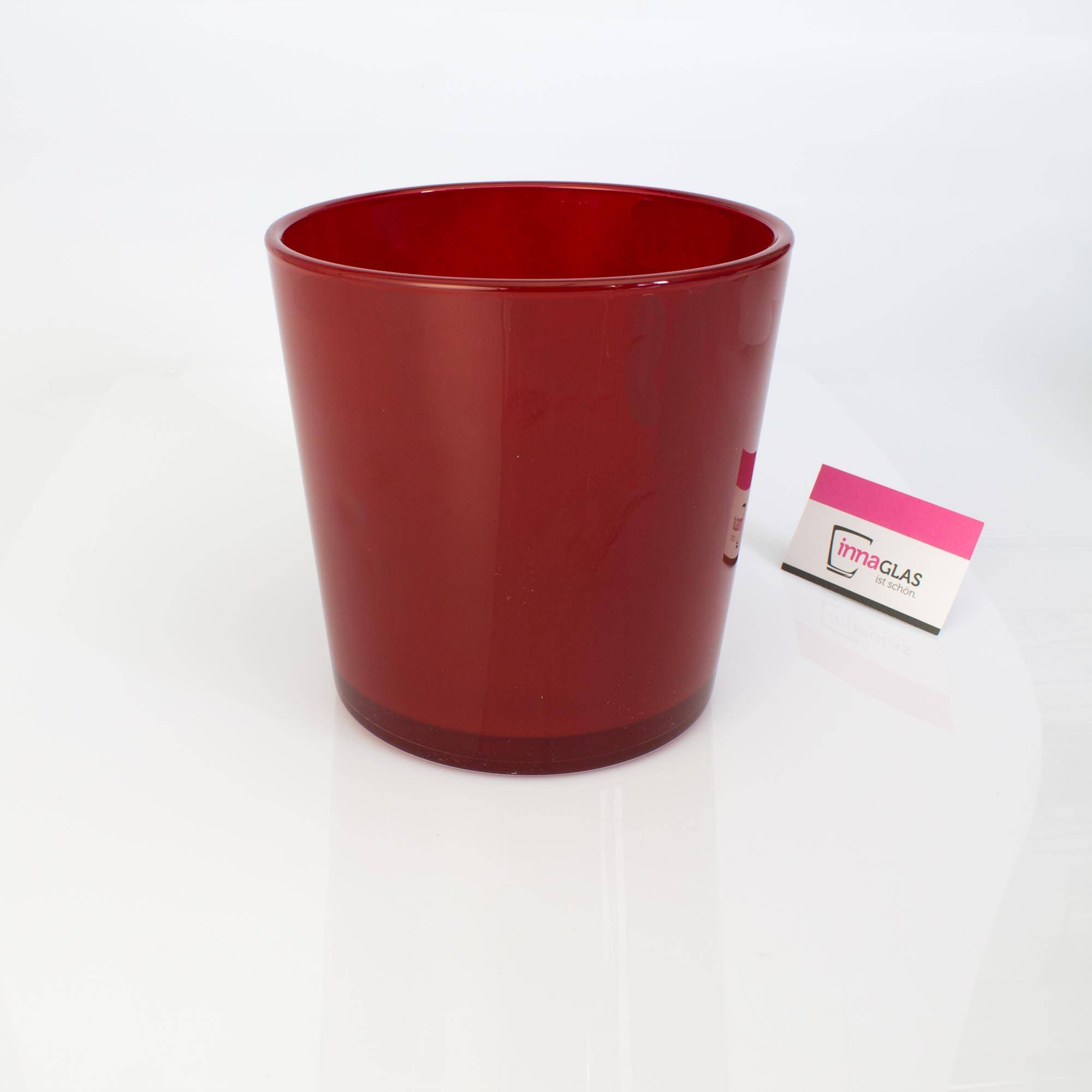 Big flowerpot ALENA in red by INNA Glas. The planter is with its size of 7"/19 cm and 7.3" / 18,5 cm in diameter ideal for small trees such as Yucca, Dracaena, etc.