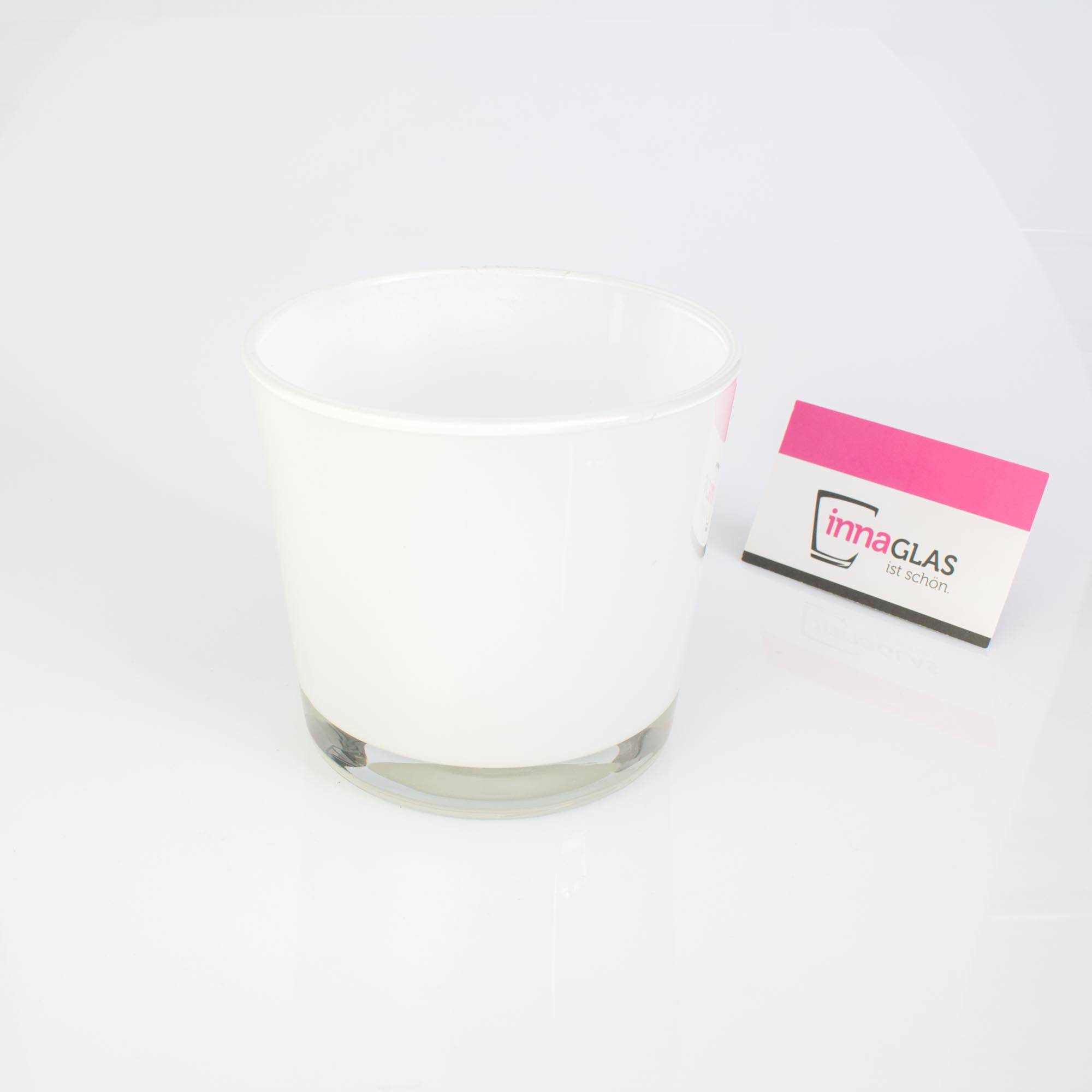 Big glass container/ flower pot ALENA, white, 4" / 10,5cm, Ø 5" / 11,5cm