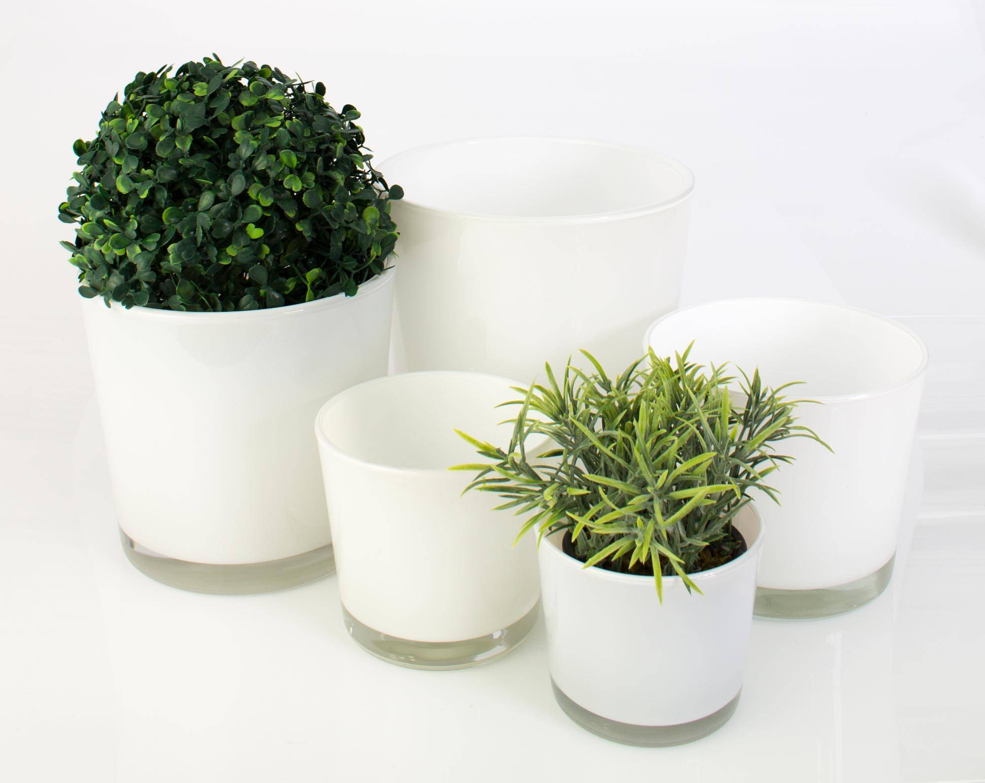 Big flowerpot ALENA in white by INNA Glas. The planter is with its size of 4" /10,5 cm and 5" / 11,5 cm in diameter ideal for small trees such as Yucca, Dracaena, etc.