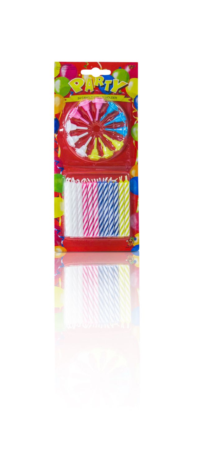Birthday candles LULUNA with 24 candles and 12 holders, white-pink-blue-yellow, 6cm, Ø0,5cm