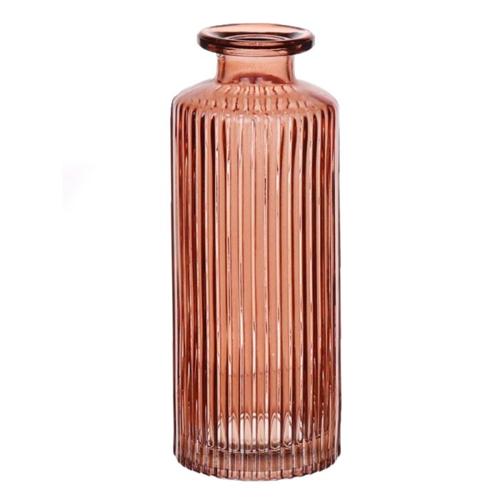 Bottle vase EMANUELA made of glass, groove pattern, brown-clear, 5.2"/13,2cm, Ø2"/5,2cm
