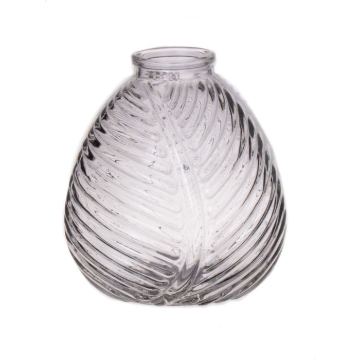 Bottle vase NELLOMIO with leaf structure, glass, clear, 5.1"/13cm, Ø4.7"/12cm