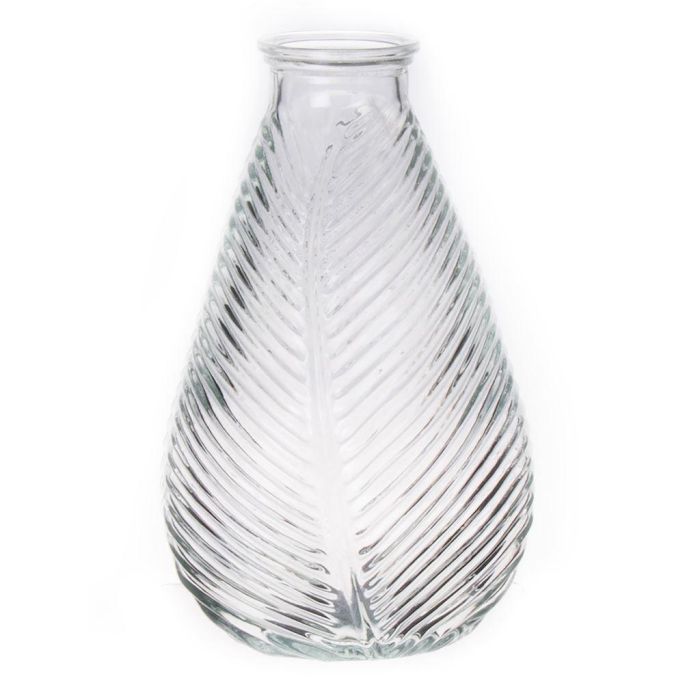 Bottle vase NELLOMIO with leaf structure, glass, clear, 9"/23cm, Ø5.5"/14cm