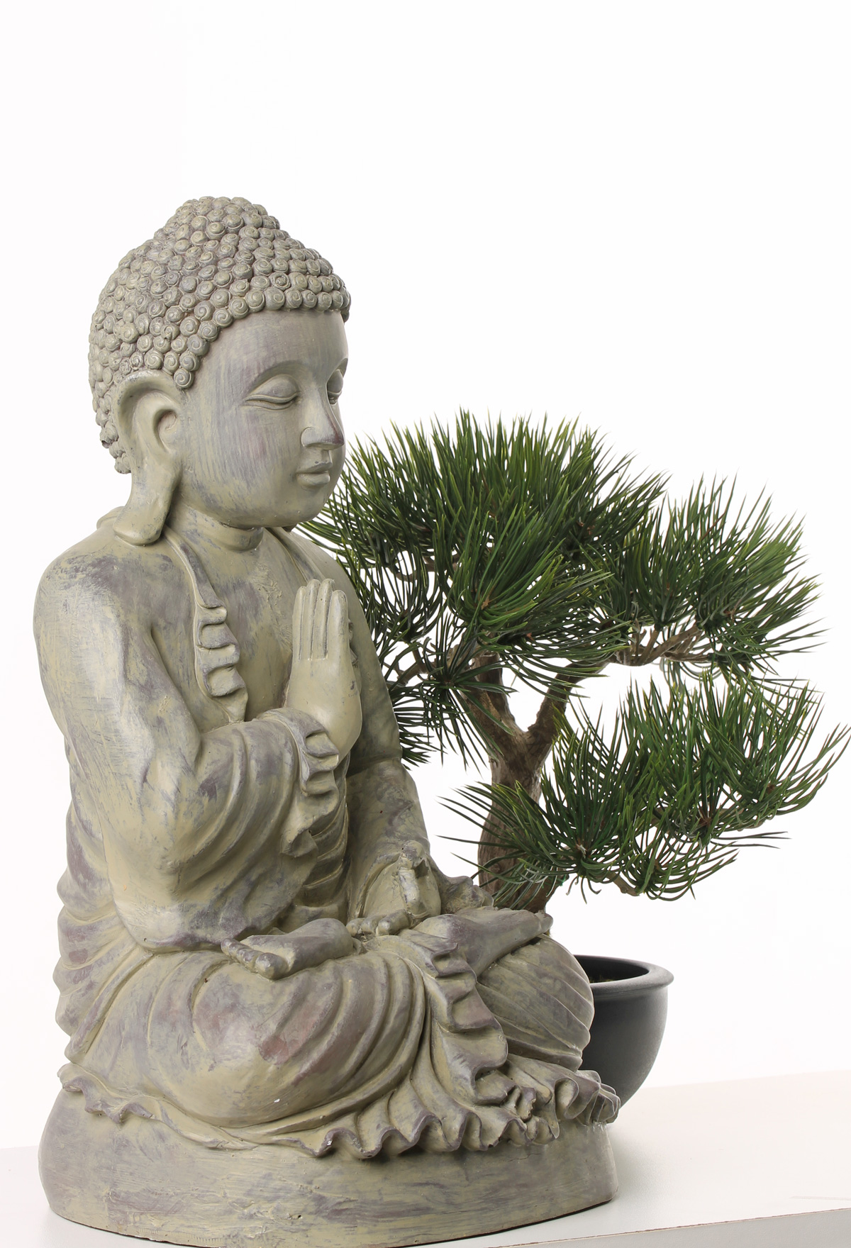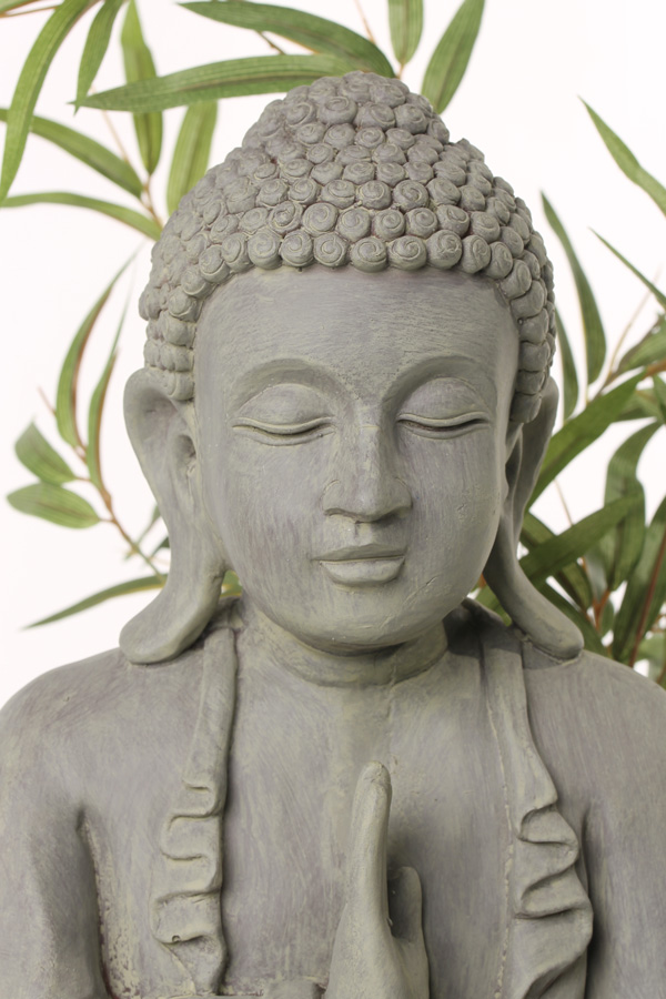 Buddha figure SHANTA, sitting meditating, grey, 18"/45cm