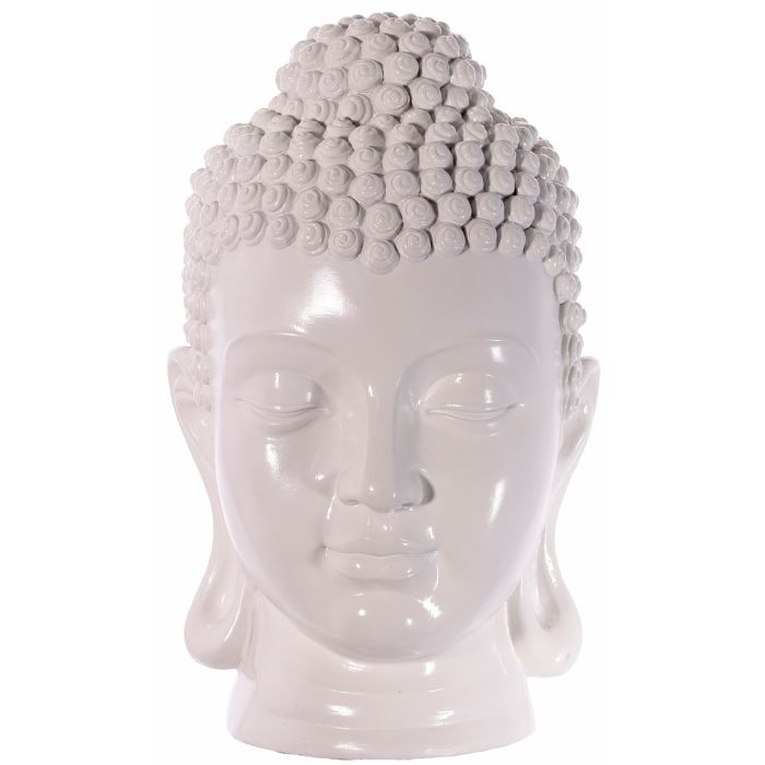 Buddha head SURYA, white, 8"x8"x15"/20x20x39cm