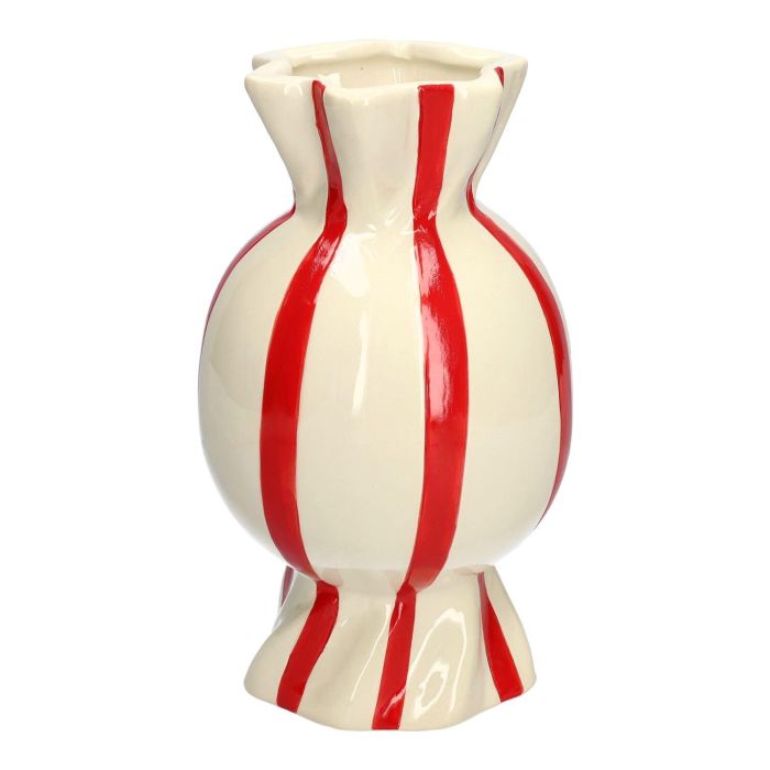Bulbous single flower vase in the shape of a sweet AMIEL made of ceramic, with vertical stripes, red-white, 10"/24,7cm, Ø5.5"/14cm