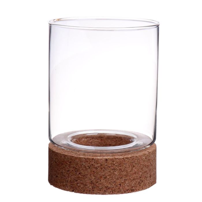 Candle glass BERRO with cork base, clear, 8"/20cm, Ø6"/15cm