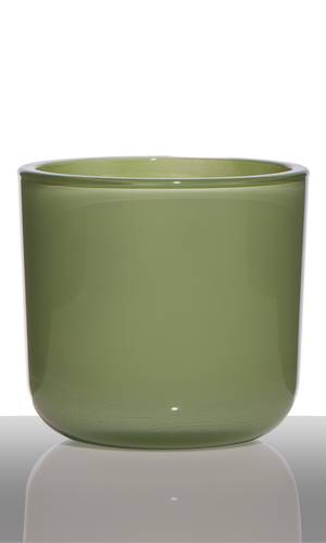 Candle glass NICK, cylinder/round, grass-green, 5.1"/13cm, Ø5.5"/14cm