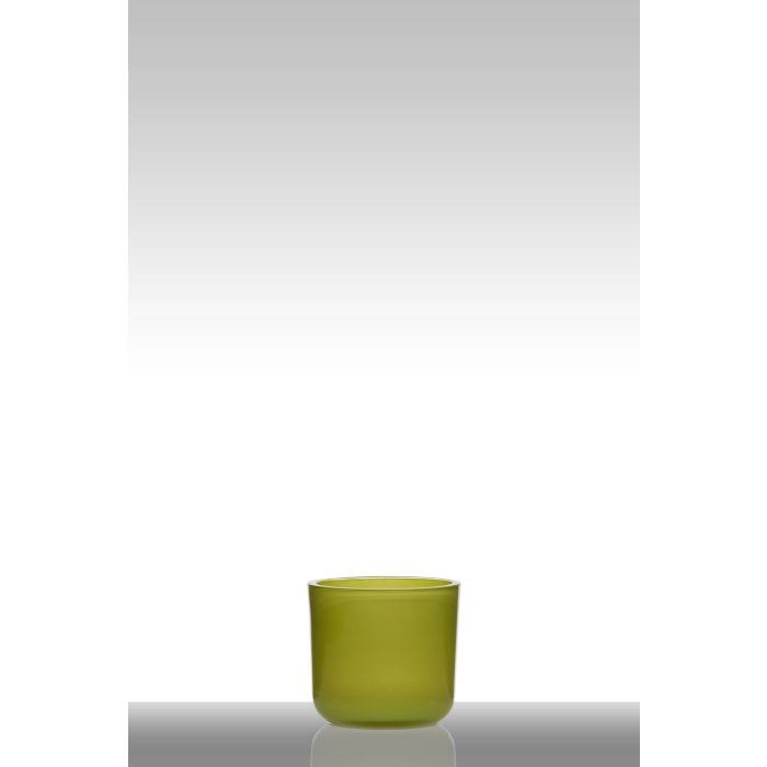 Candle glass NICK, cylinder/round, light green, 5.1"/13cm, Ø5.5"/14cm