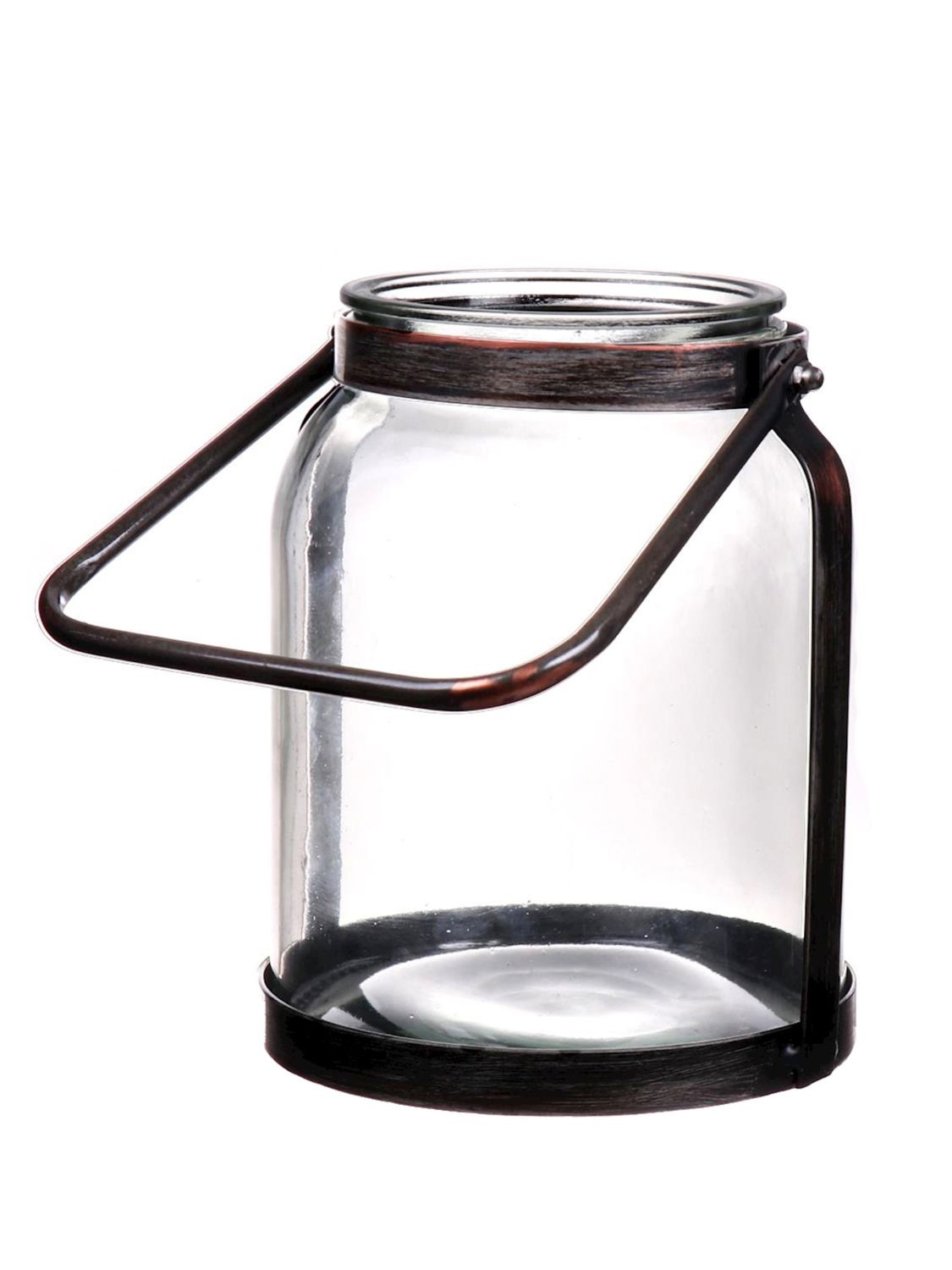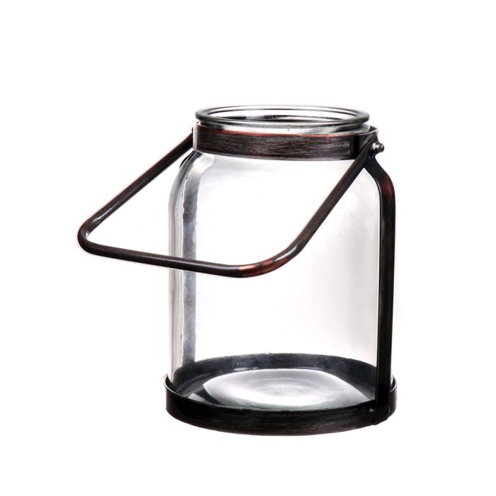 Candle vase with handle SUBRA, glass, metal, transparent, brown, 8"/21,5cm, 6.7"/17cm