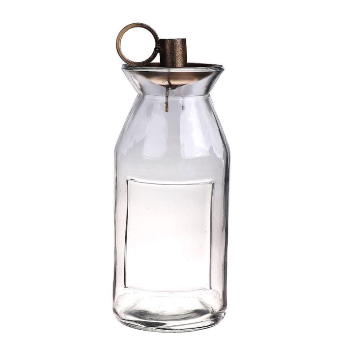 Candleholder NENEKONI on glass bottle, handle, clear-bronze, 8"/21,5cm, Ø3.7"/9,5cm