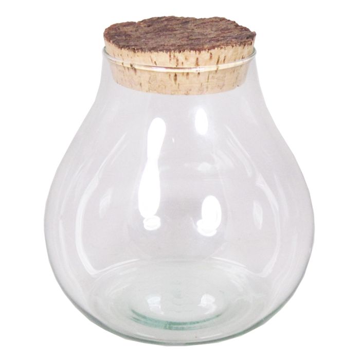 - The glass jar possesses a spherical shape and a cork lid for better food preservation