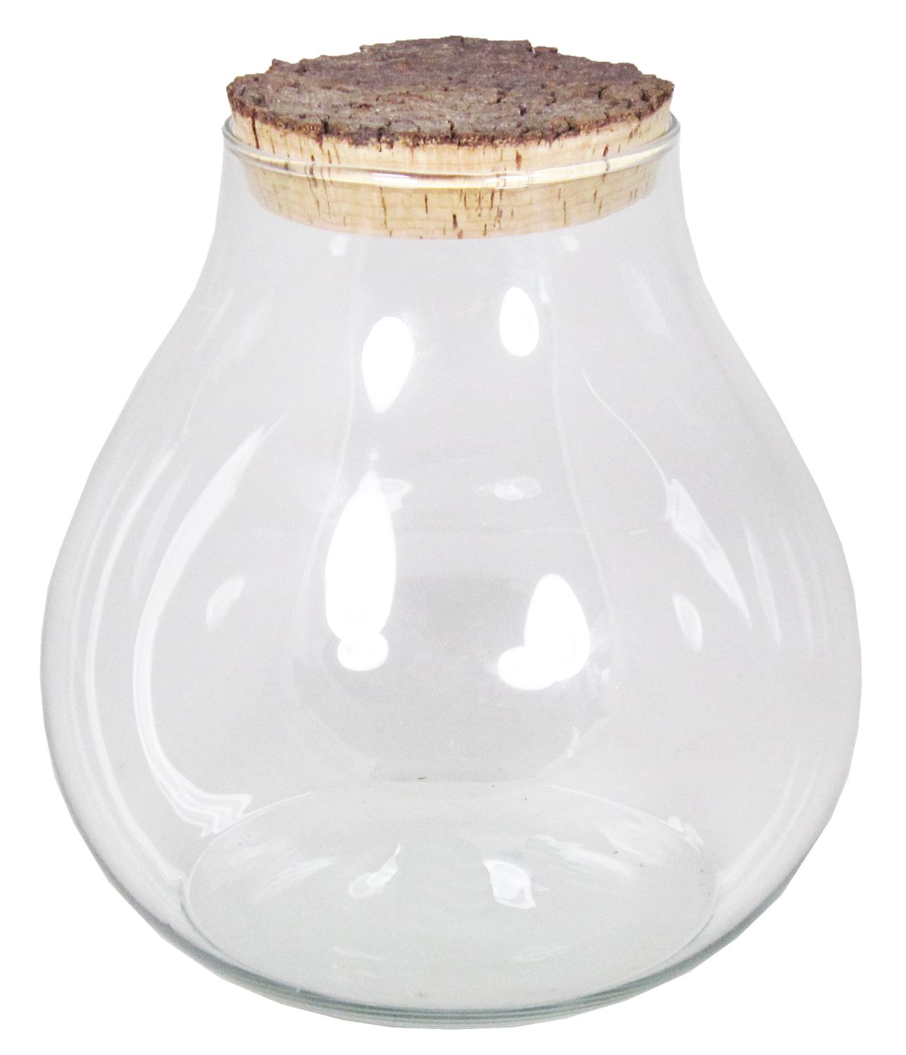 - The glass jar possesses a spherical shape and a cork lid for better food preservation