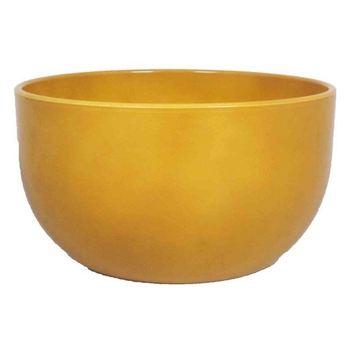 Plant bowl TEHERAN TOWER made of ceramic in colour ocher yellow with a diameter of approx. 10"/26 cm and a height of approx. 5.5"/14 cm.